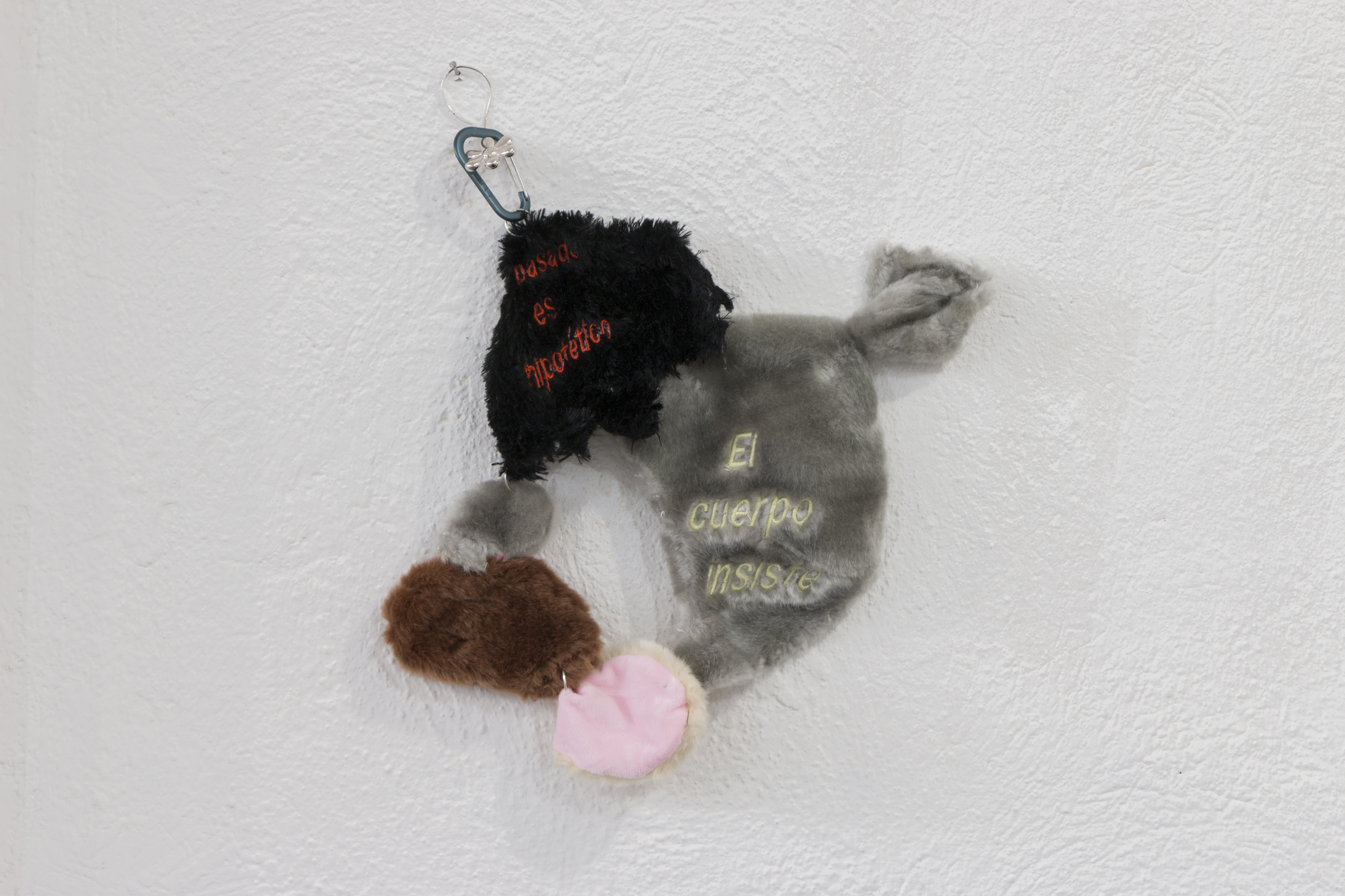 Todo pasado es hipotético + el cuerpo insiste, 2020. Bordado sobre peluche con bisutería, dimensiones variables.