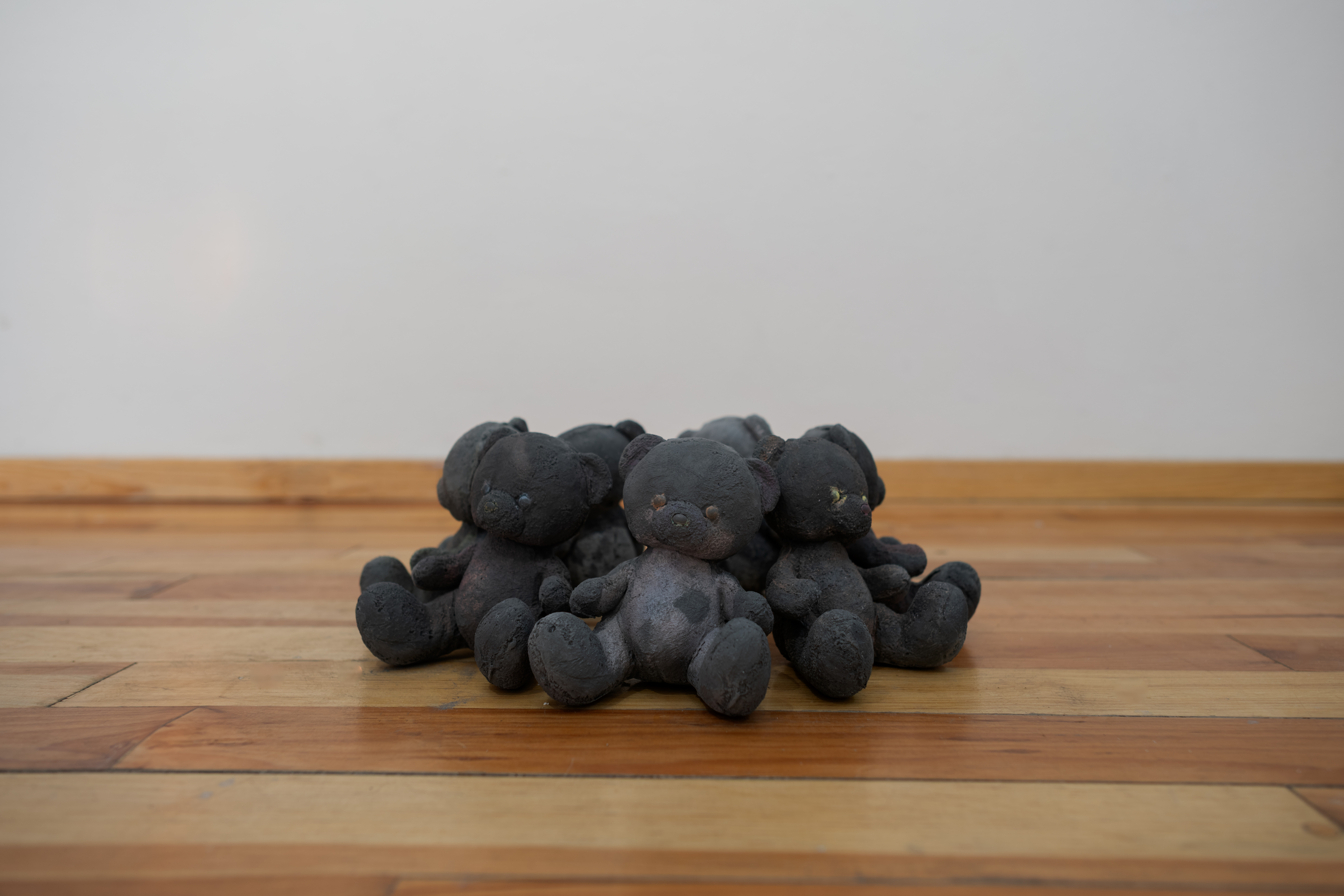 ❤ Consorcio . 2025. Grupo de 7 esculturas de osos de cemento y maquillaje que se cuidan las espaldas ❤